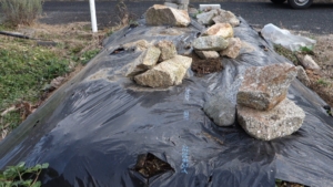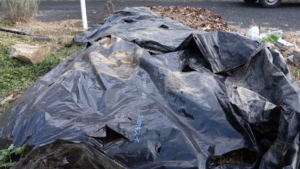 黒マルチで覆う: 菌が活動しやすい温度と湿度を保つため、黒いシート(マルチ)で覆います。