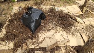 このもみ殻も、シートをかけていましたが、一年近く放置しているものです。